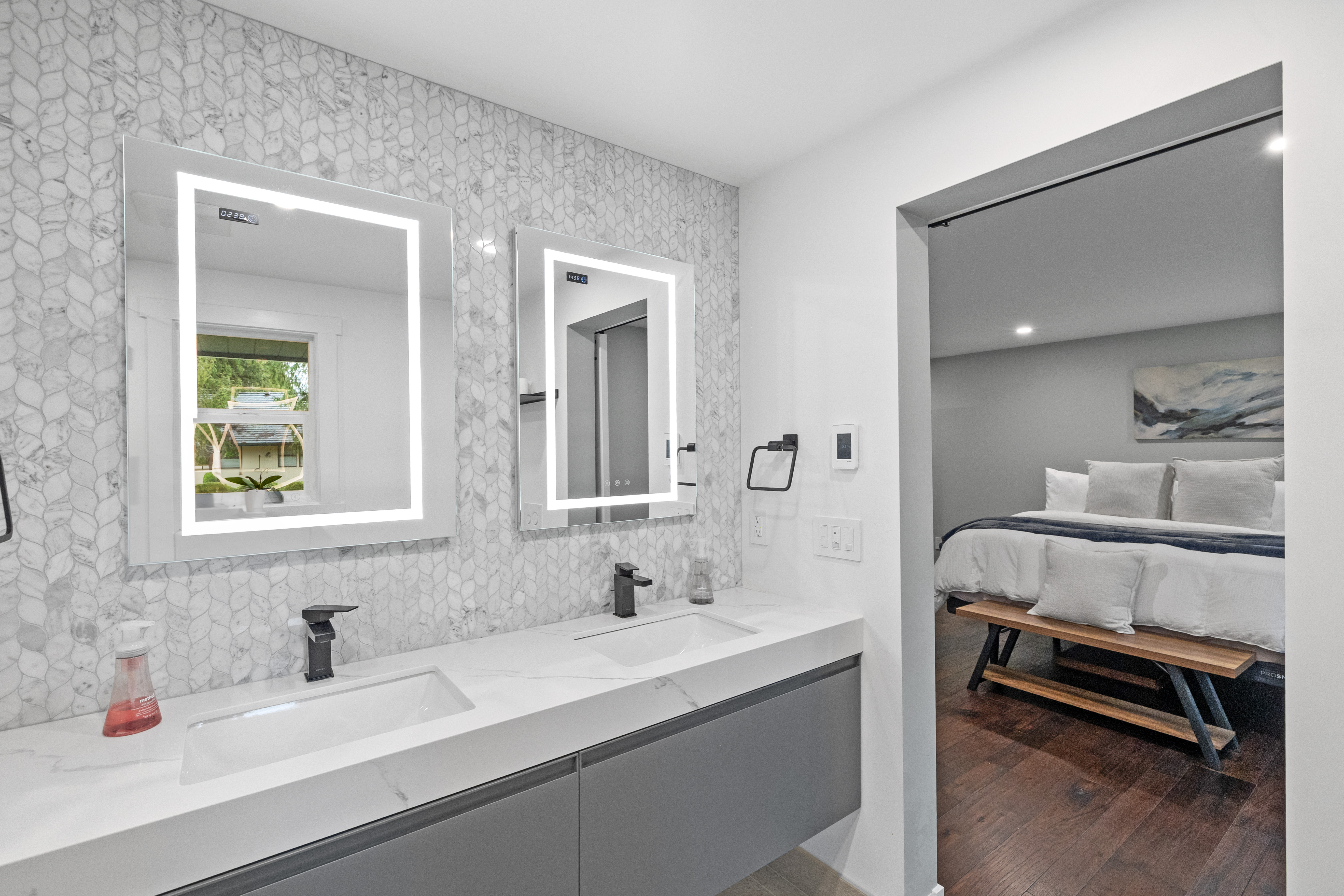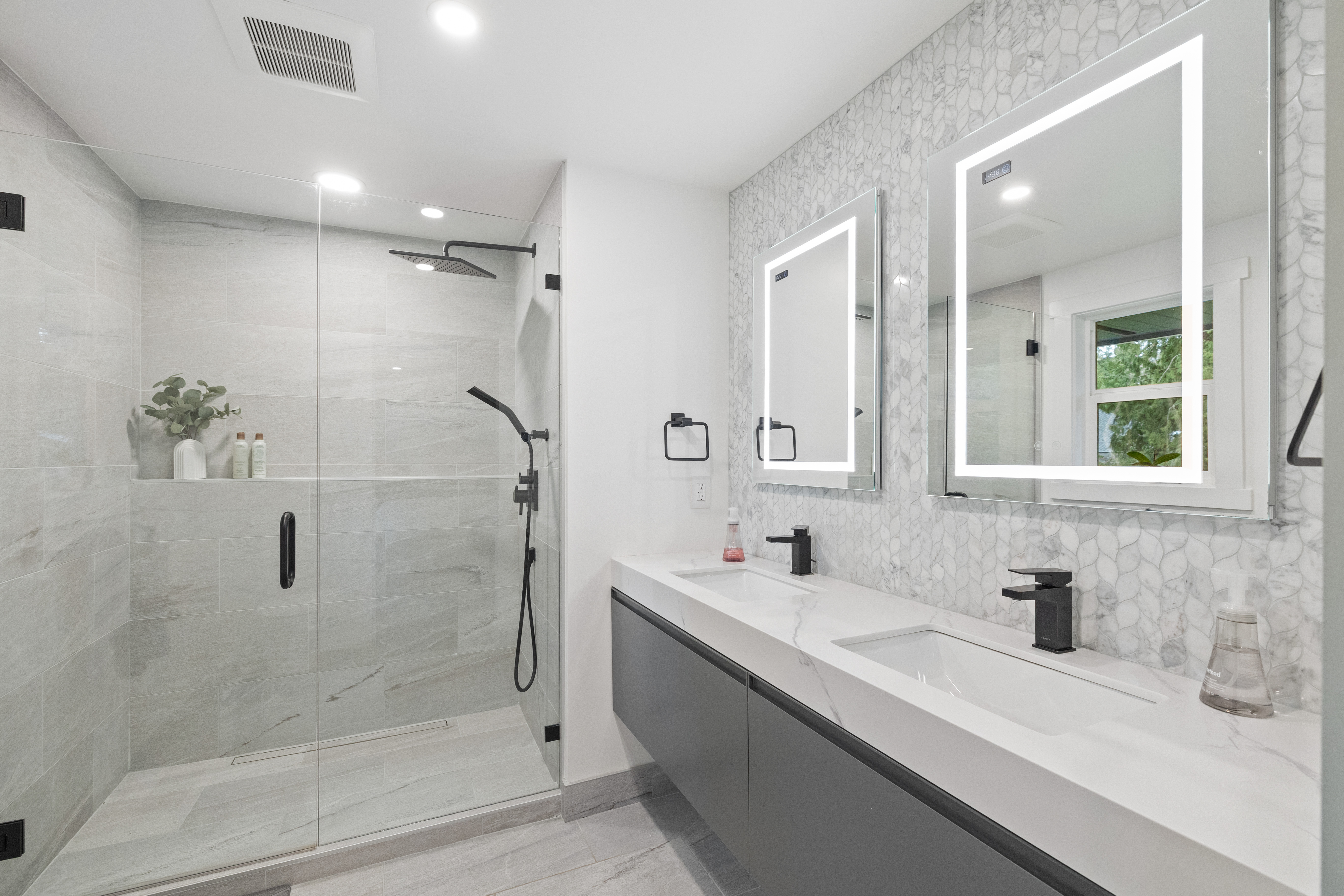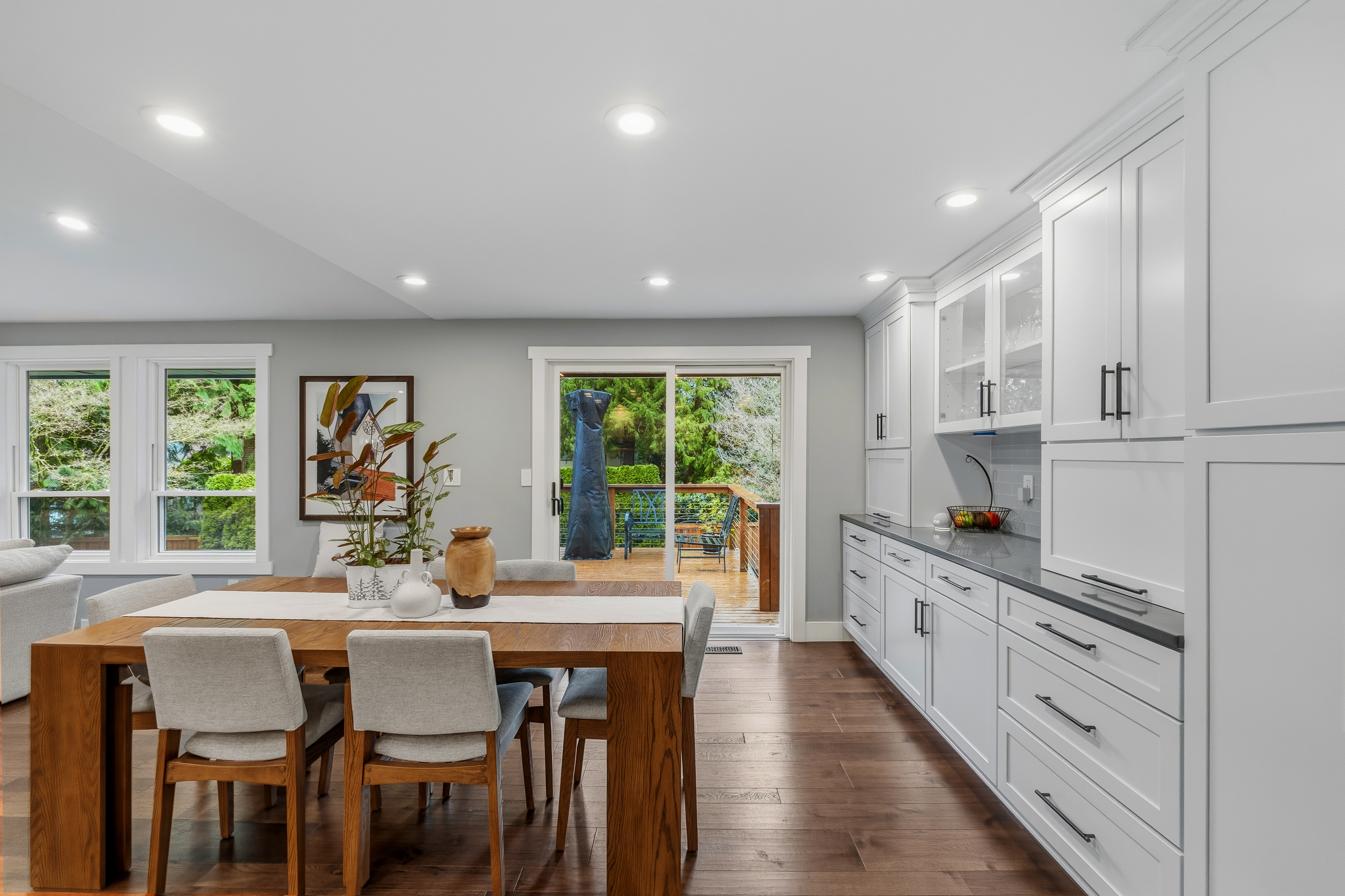 Stunning Mill Creek daylight rambler offering elevated, open living with beautiful, engineered hardwoods, smart LED lighting, and upgraded electrical throughout. The designer kitchen features custom storage and premium appliances. Spa-inspired bathrooms include heated floors, rain showers, floating vanities, while the primary suite offers a walk-through closet and luxurious finishes. Major upgrades include new insulation, heat pump, air handler, tankless water heater, and leaf-guard gutters with lifetime warranty. Outdoor highlights include a sun-filled deck, stonework, yard lighting, and garden shed. Conveniently located near Mill Creek Town Center, trails, parks, golf, tennis, swimming, sports complex, and top-rated schools.